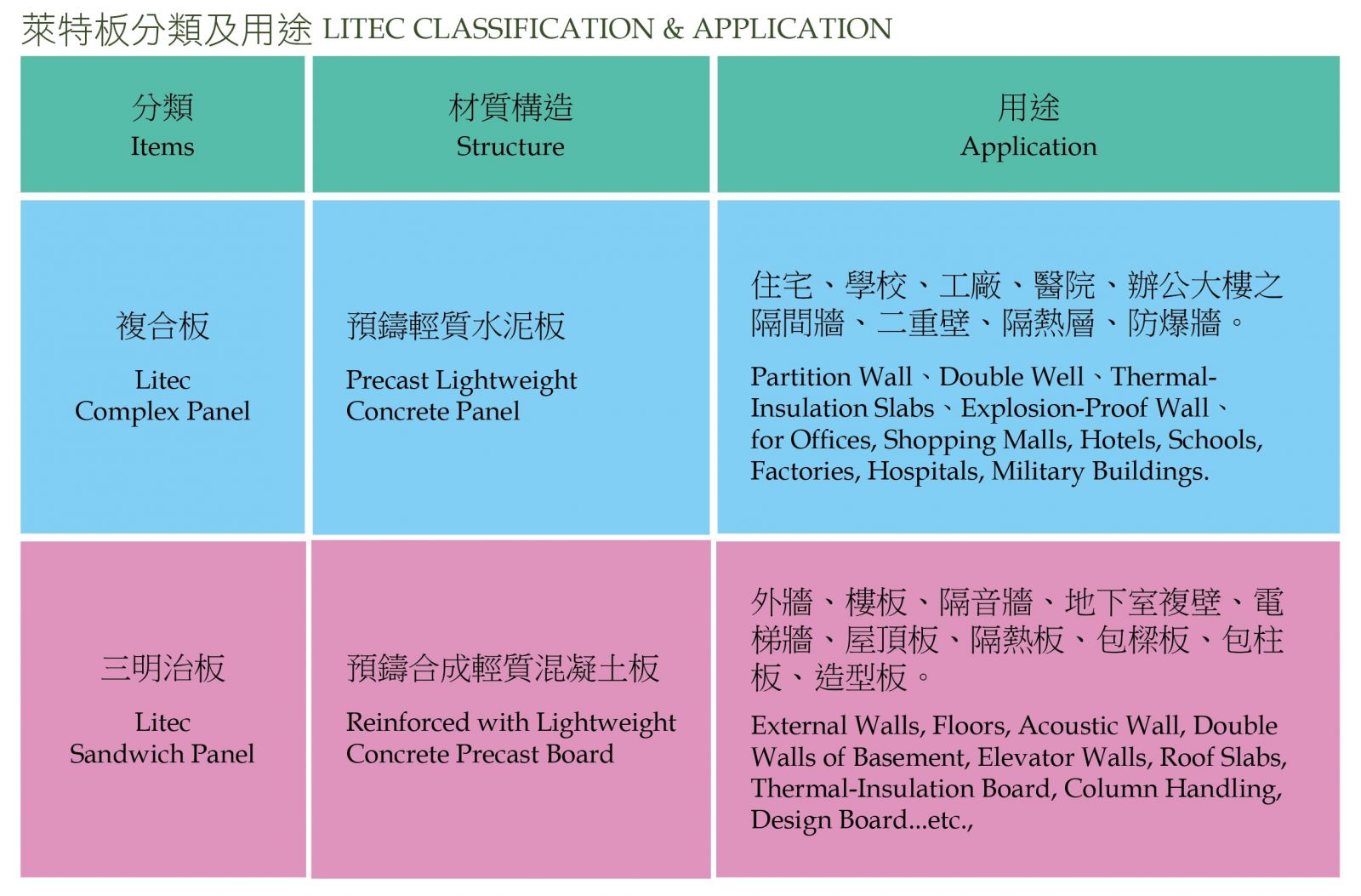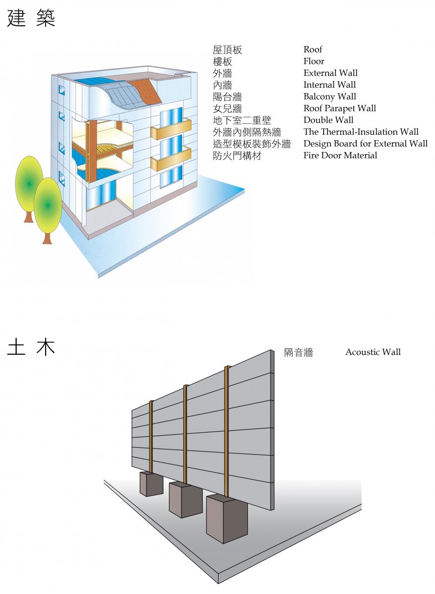 主要使用於外牆、樓板、屋頂、吊掛石材之內(nèi)牆、地下室複壁等。